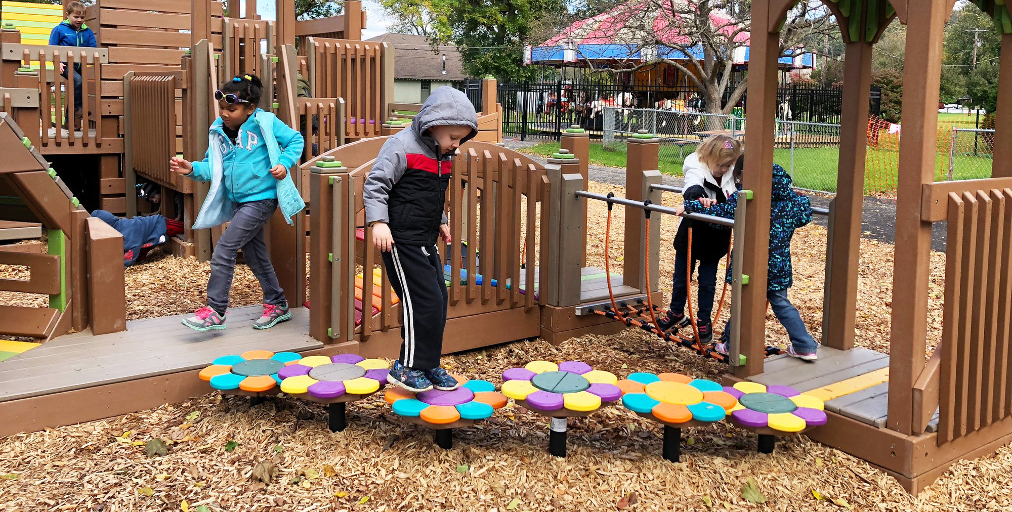 “There’s just a little bit of everything out there,” Lauzun said. “It just comes down to a wide variety of things that slide, spin, rock, bounce, climb, crawl, twist, turn, just trying to create all of those things in a variety of reaches and a variety of places so that every child at any age and any level of ability finds something that works.”