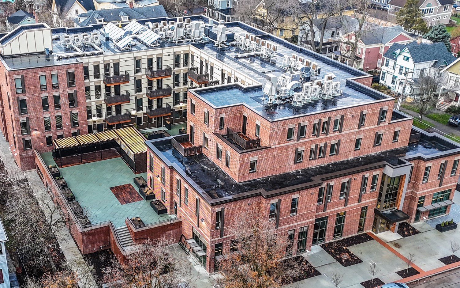 Library Place, a new 66-unit apartment building on Court Street in Ithaca, moved in its first residents at the beginning of December. Photo by Joe Scaglione