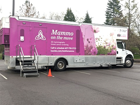 Tompkins County Whole Health and Guthrie Lourdes bring the “Mammo on the Move” Mobile Mammography Van on Oct. 29 for low- or no-cost breast cancer screenings. Call 607-798-5723 to schedule.