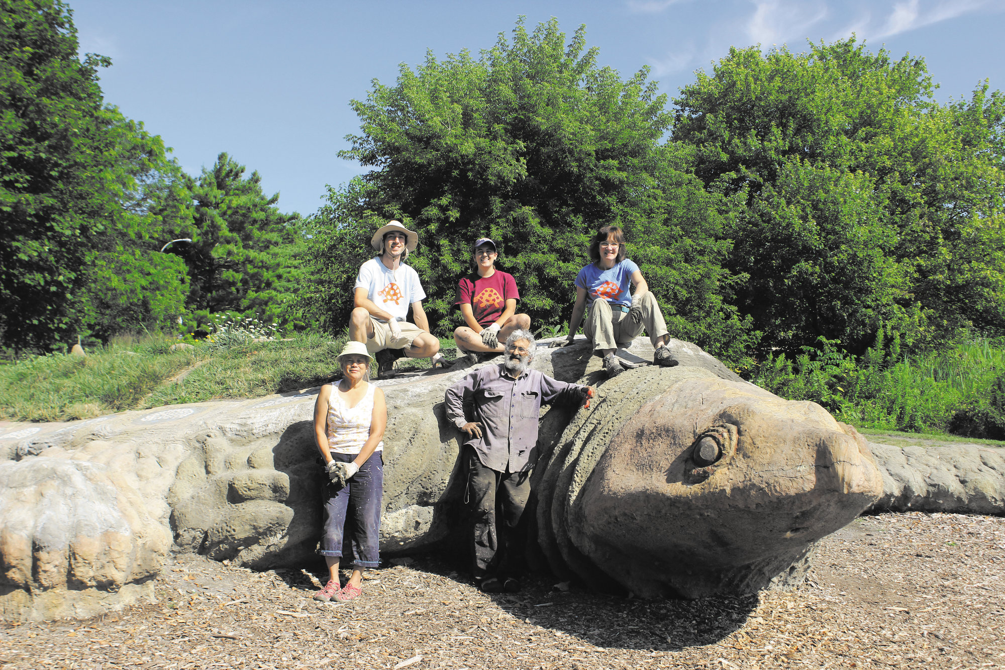 Brett Williams and Laura O’Brien, environmental studies majors at Ithaca College and summer horticultural interns at the garden, also volunteered for the Gaia project, and they said they thoroughly enjoyed the experience. Neither had any experience with sculpting or concrete work, but Atkins made it easy to learn, they said.