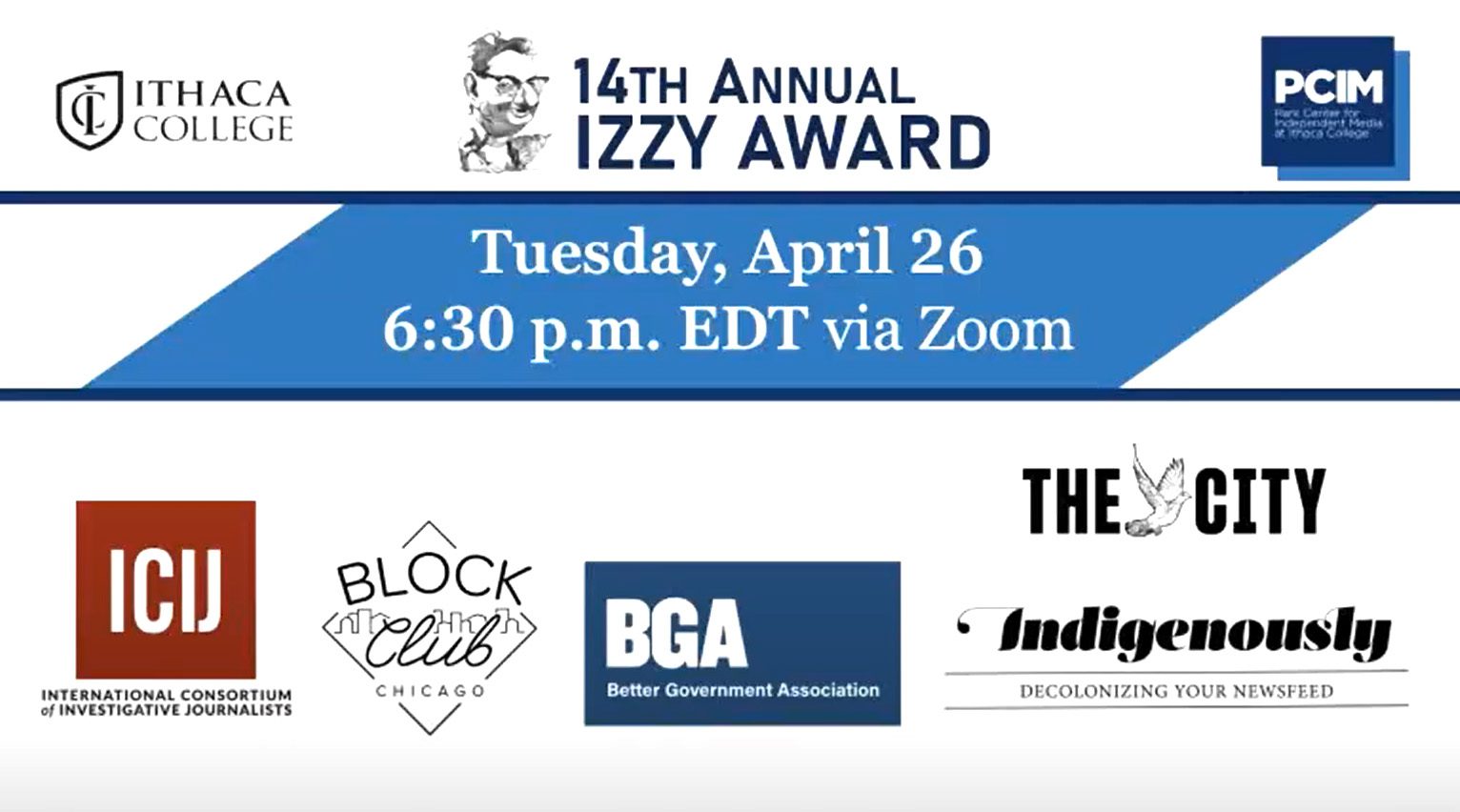 On April 26, the Park Center for Independent Media (PCIM), part of Ithaca College, hosted the 14th annual Izzy Award ceremony. This year’s award, named after legendary dissident journalist I.F. Stone, honored five news organizations and journalists that represent outstanding achievement in independent media from 2021.