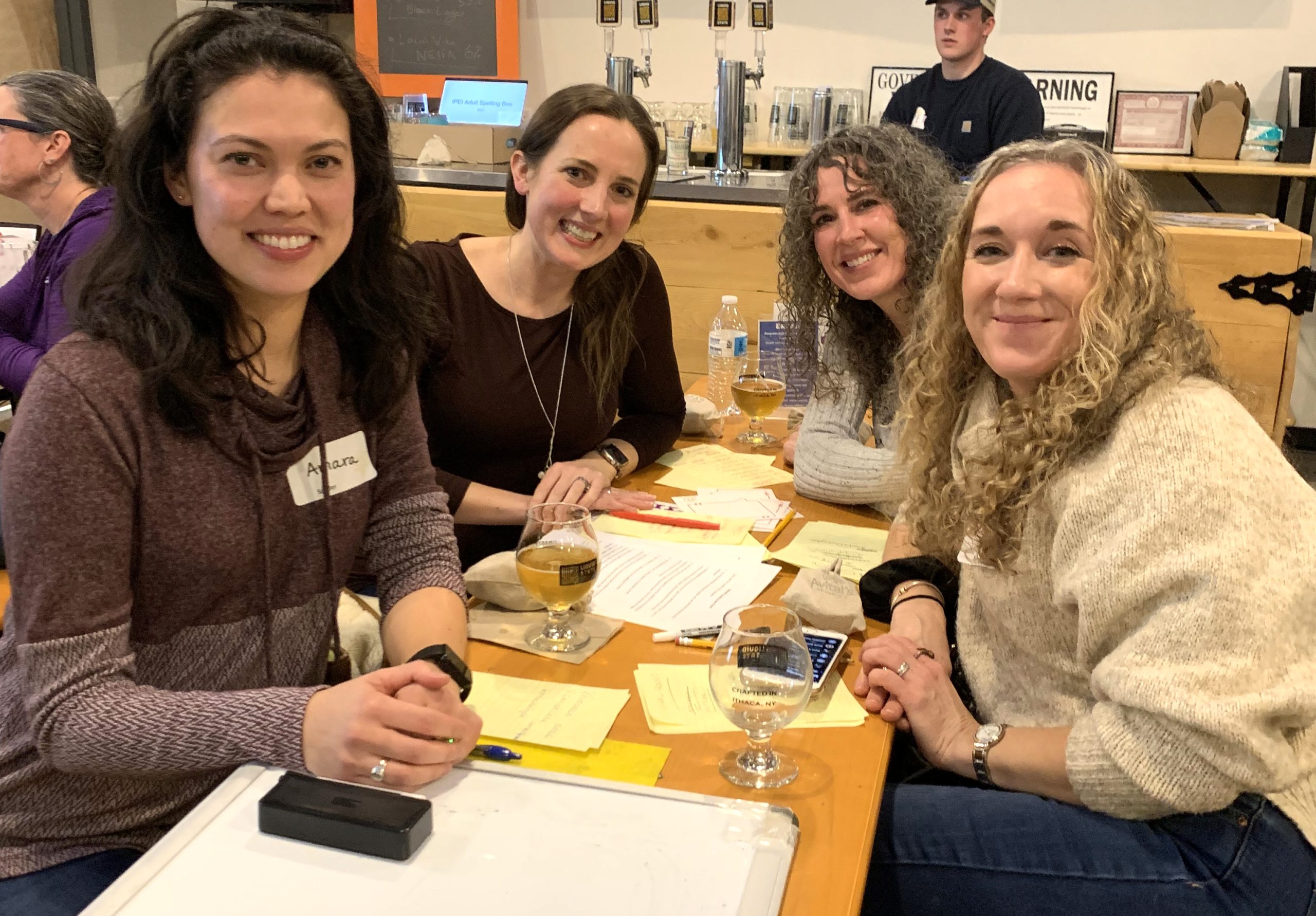 The Ithaca Public Education Initiative (IPEI) held an updated version of its 22 years-running fundraising event, the Adult Spelling Bee, at Liquid State Brewing Company on March 5. “We’re excited to see this event return to the Ithaca philanthropic calendar and to re-envision this event by partnering with a local brewer and making the spelling even more interesting,” said Courtney Reinhart, IPEI’s president. Bee-witched (above) won this first Spelling Bee of the year by correctly spelling “acetaldehyde” in the championship round. “We’re really grateful to be able to return to in-person events, thankful to Ben and Jamey and the staff at Liquid State for hosting us, and looking forward to our Scavenger Hunt in April and our second Spelling Bee on May 15th at South Hill Cider!” said Steven Manley, IPEI’s executive director. IPEI’s fundraising events fund grants for Ithaca City School District teachers, schools and staff to support innovative ideas and meet immediate needs in classrooms in Ithaca’s 12 schools. IPEI recently served as the sponsor of the Ithaca Outdoor gear project, raising over $90,000 to purchase outdoor gear for every ICSD elementary school, furthering outdoor experiences year round for all students. Learn more about IPEI and register for an upcoming event at ipei.org