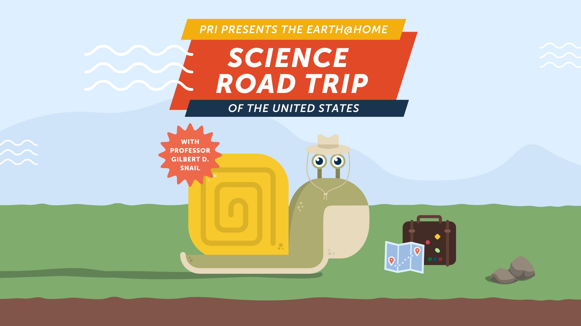 The Science Road Trip will explore each region of the United States to create a geological road map. For the initiative, PRI has developed a mascot named “Professor Gilbert D. Snail,” a cartoon snail with a faux degree from Cornell University.