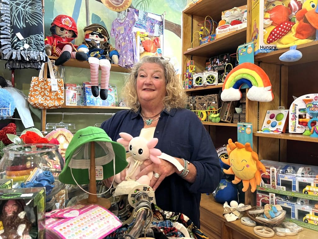 Jennifer Engel at home amongst the toys in her store, The Cat’s Pajamas, located in Dewitt Mall in Ithaca.