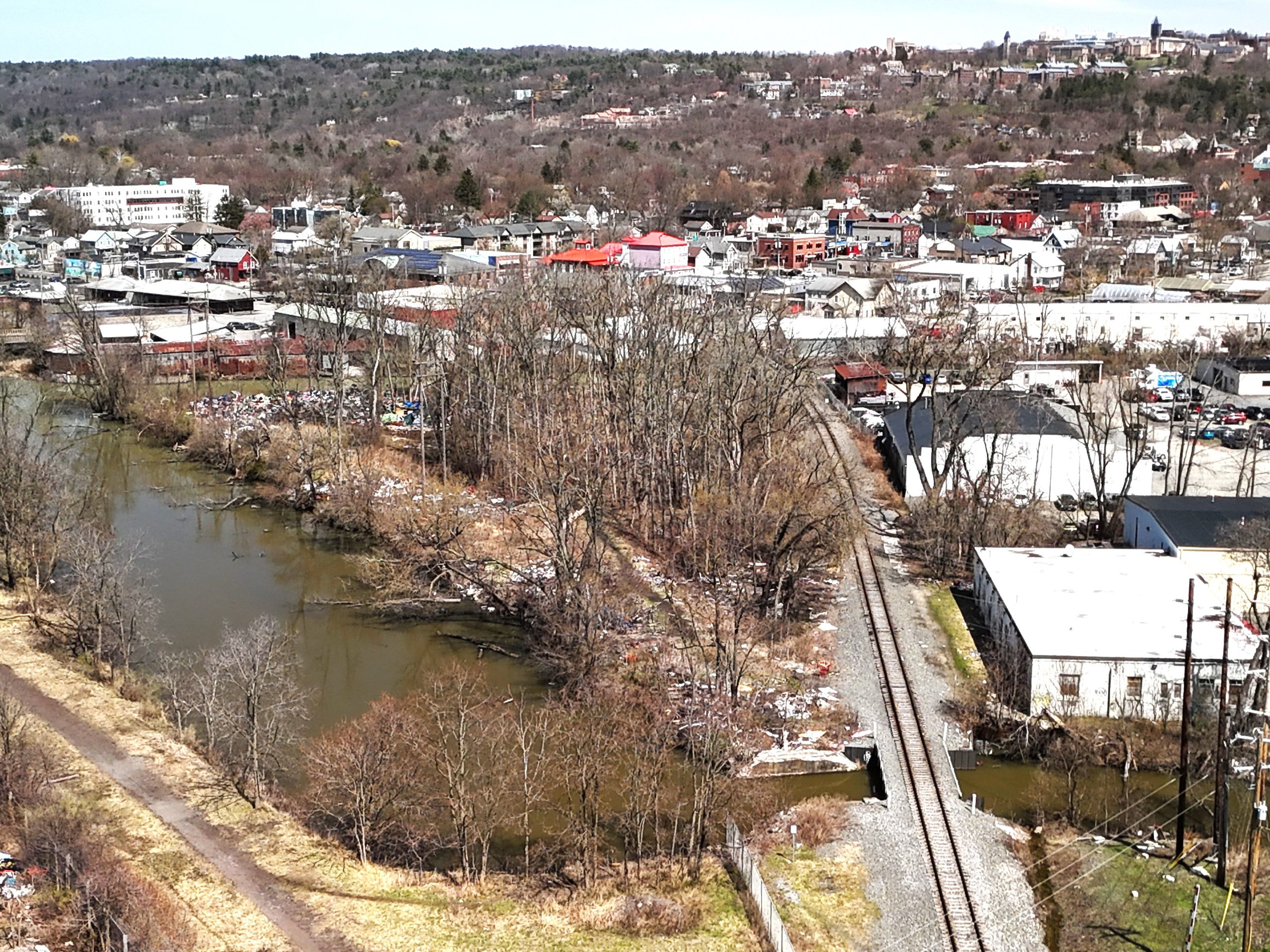 The county’s letter states, “Tompkins County Environmental Health (TCEH) has received multiple complaints and has witnessed conditions on property you own in the area bounded by Six Mile Creek, the railroad tracks, the Cayuga Lake flood control channel and Cecil Malone Drive. The refuse cited in complaints and observed by TCEH in this general area includes trash; garbage; shopping carts, discarded bicycles, and other metal objects; sharps (hypodermic needles); propane canisters; and the remains of various fires. This refuse is a public health nuisance and/or hazard and is a violation of Article IV of the Tompkins County Sanitary Code (TCSC).”
