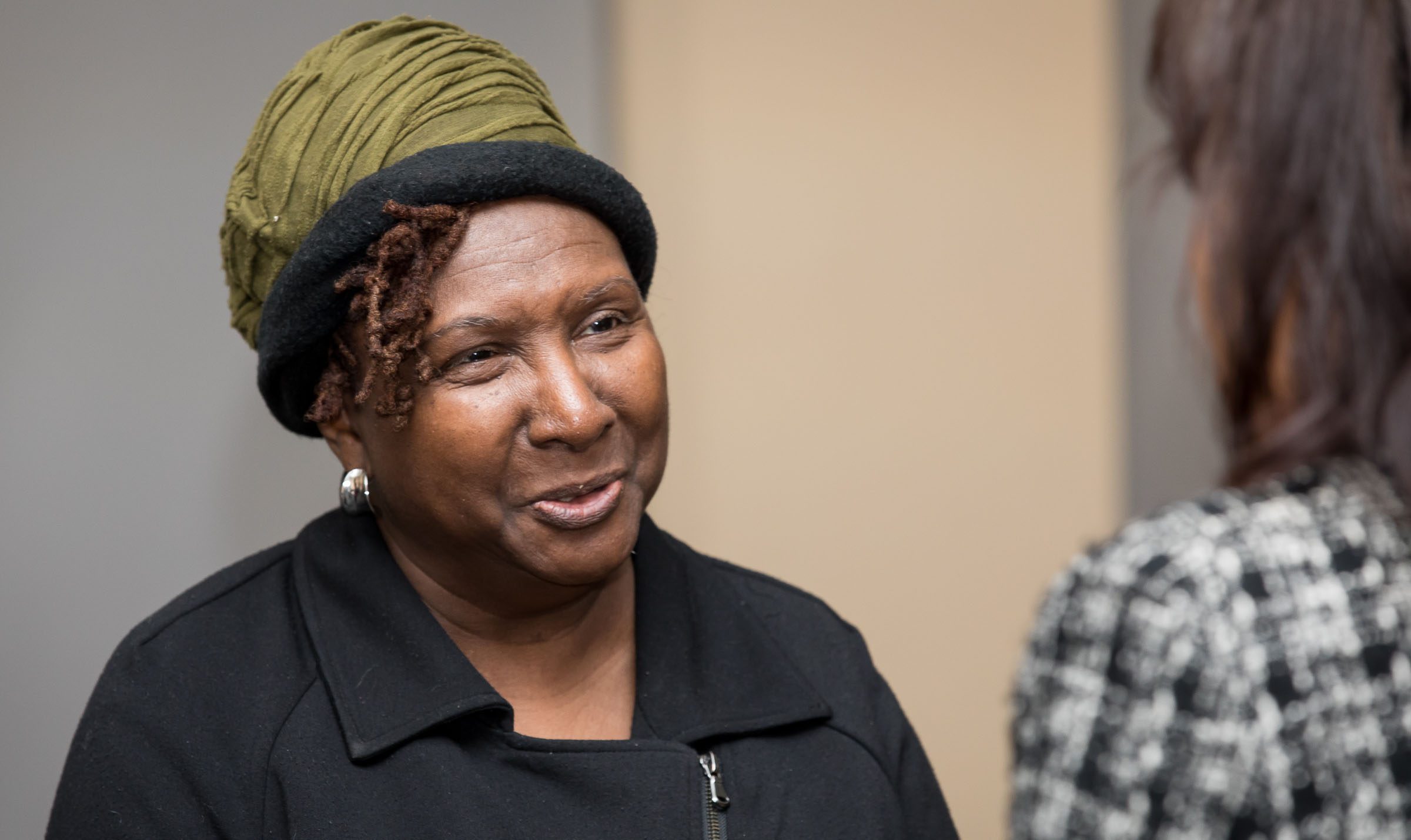 Millicent Clarke-Maynard, CEO and educator at Teacher On The Go Consulting Group LLC, talks with an attendee of a community gathering organized by Business Leaders of Colors prior to the pandemic. Business Leaders of Colors will be coordinating a Black-Owned Business Expo in celebration of Juneteenth this year. Photo provided.