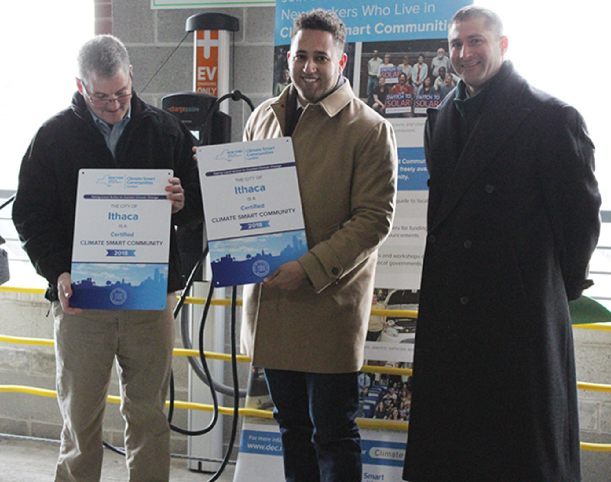 The City of Ithaca was recognized by the New York State Department of Environmental Conservation (DEC) last Wednesday, Jan. 31, as a leader in taking action to reduce greenhouse gas emissions and build climate resiliency. Ithaca is now the 17th certified Climate Smart Community in the state of New York. Locally, the Town of Ithaca and Tompkins County have both earned this certification.