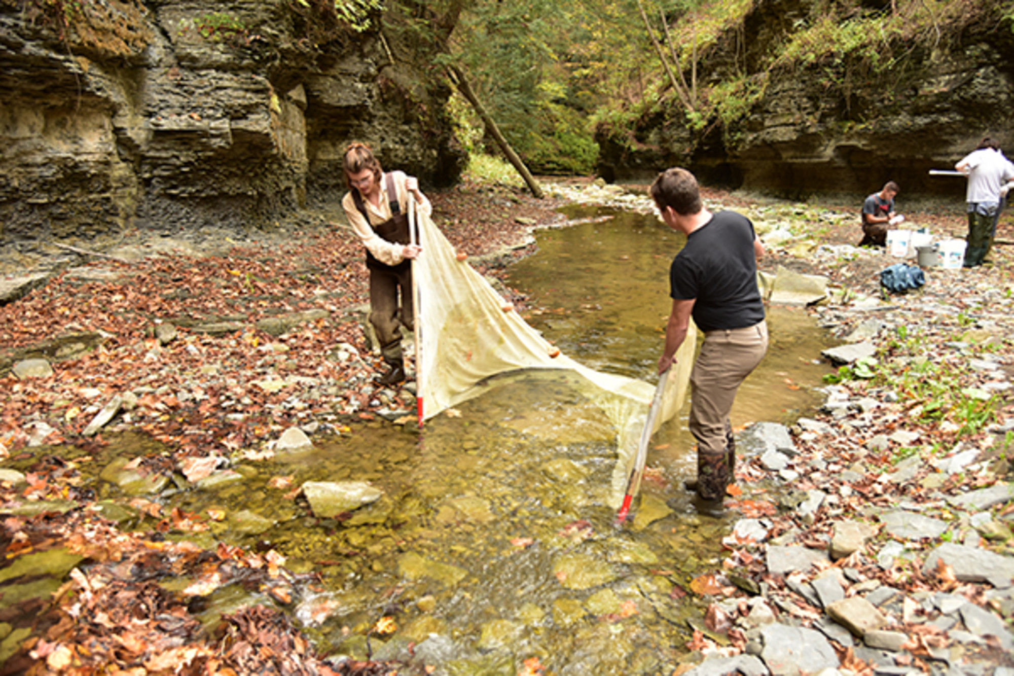 Through a connection with a former student, Whitlow was approached by the regional director of the New York State Parks and Recreation Department and asked to study the sediment buildup in Lake Treman behind the dam that makes up the lake’s north point in Upper Buttermilk Falls State Park. After accepting the project Whitlow and his students got to work.