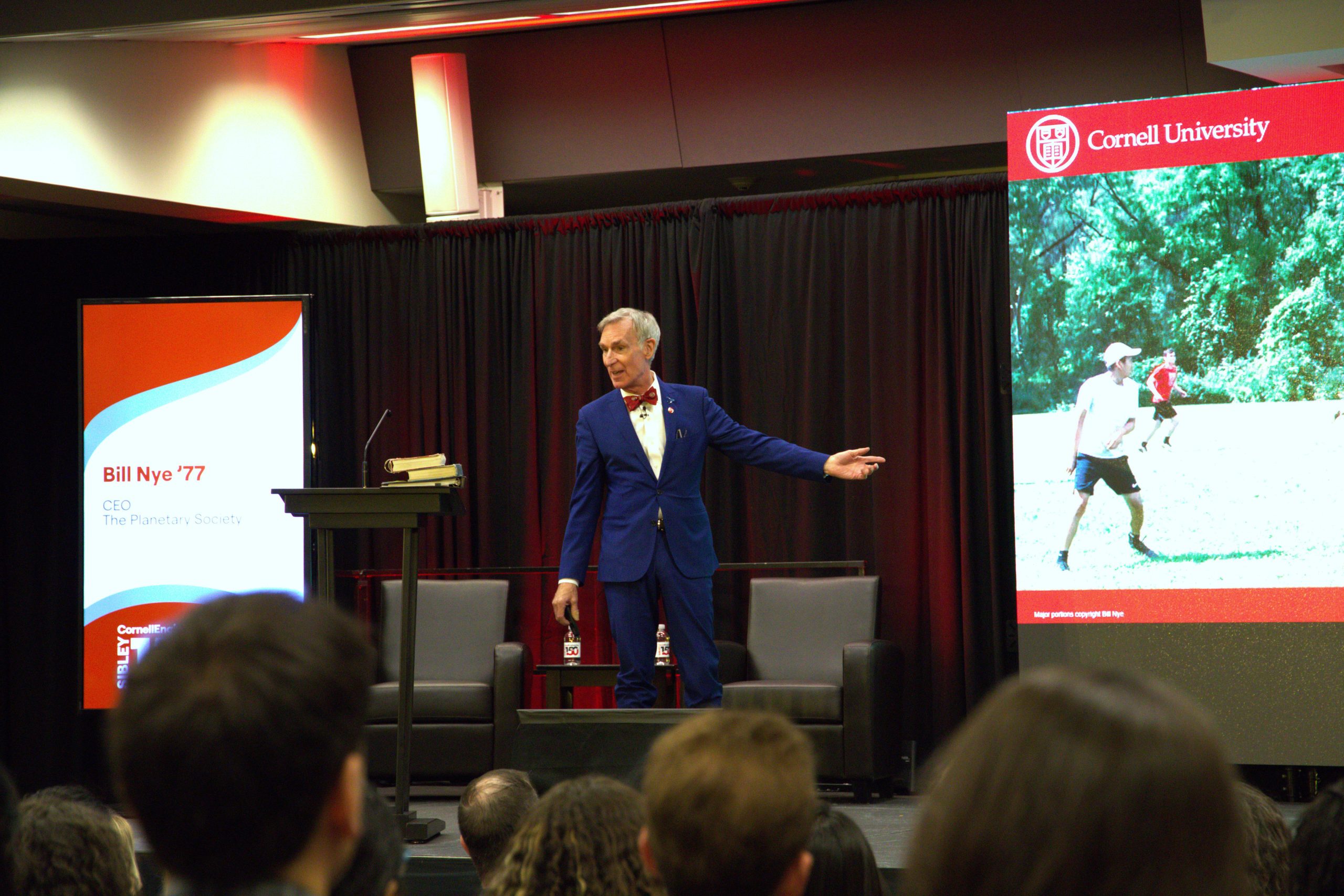 “Cornell has made me who I am,” Nye said, “so I just cannot thank Cornell enough for, uh, that mistake in the admissions department, and everything that’s happened since then.”