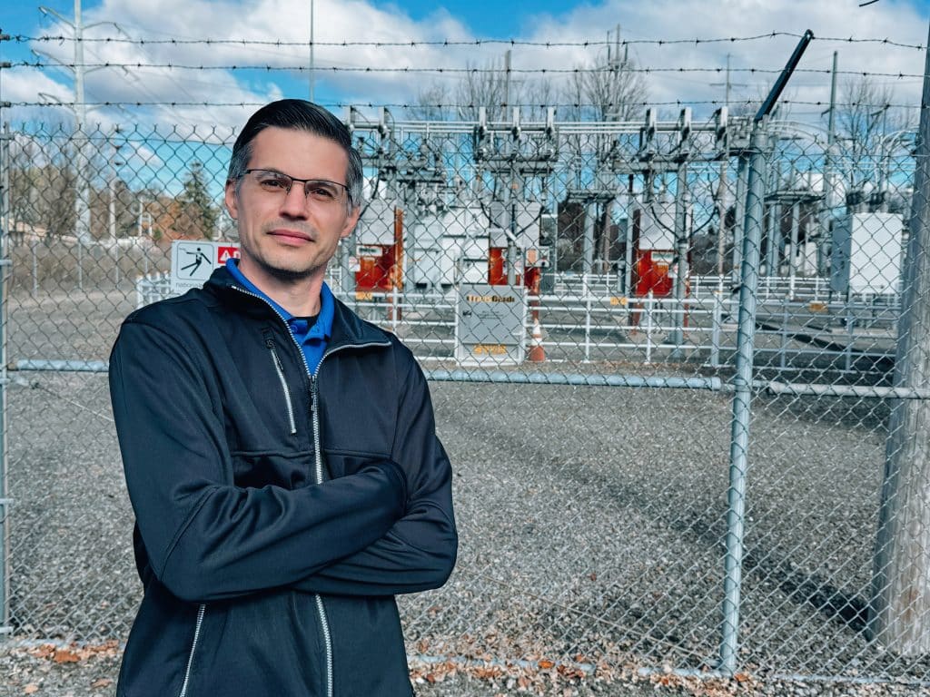 Jesse Dovi in front of a nearby substation, the dealership has been in the same location for 76 years.  A third generation operator, the business was started by his grandfather Tony Dovi as a Texaco gas station.  Jesse has been working at the dealership part time since I was 14 and full time for the last 16 years.