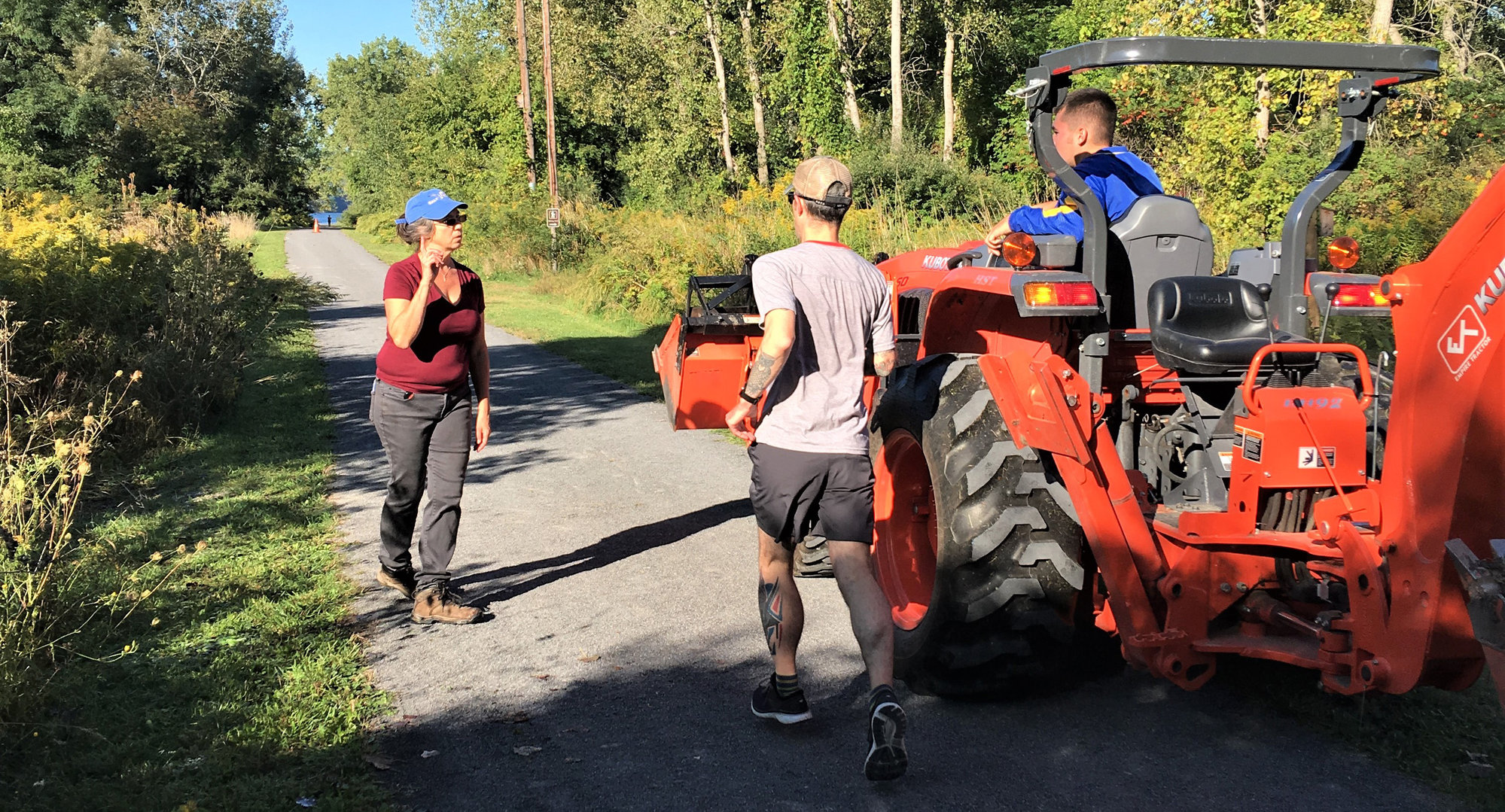 About 20 volunteers spent the day planting trees, trimming back brush and moving mulch. A tractor and brush mower on loan from the Parks and Recreation Department and volunteer Ty Todd made the work easier.