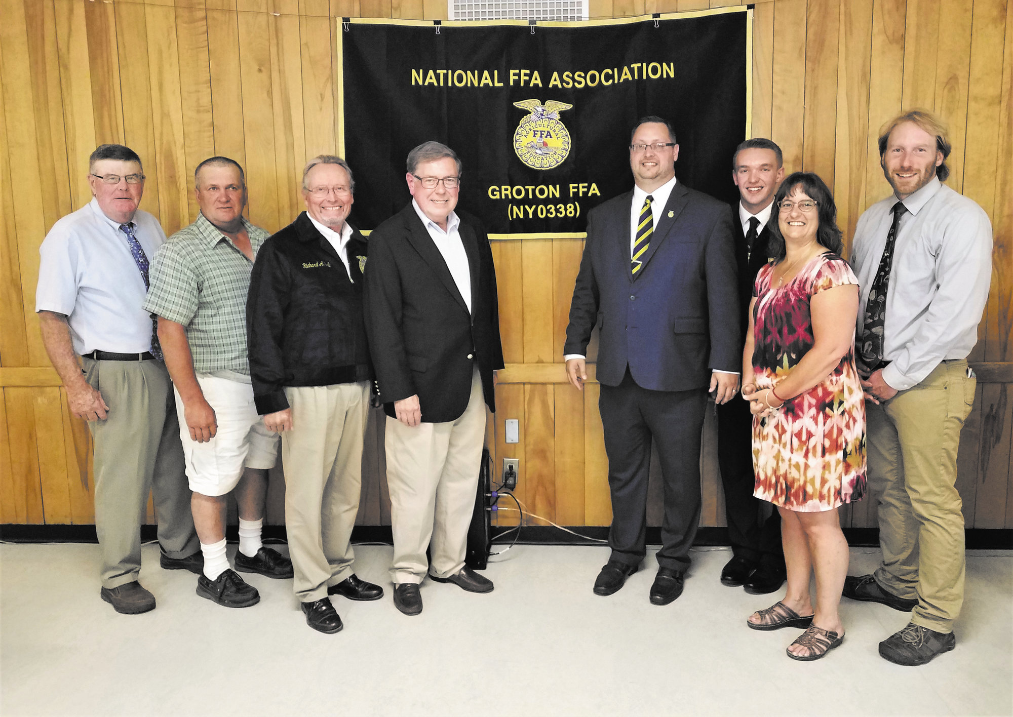 New York State Commissioner of Agriculture Richard Ball, who presented the official charter; Sen. James Seward; NY FFA Director; Derek Hill; and a full slate of officers from the New York State FFA chapter were all a part of the 72 individuals who attended this special event to help celebrate this exciting day in Groton FFA history.