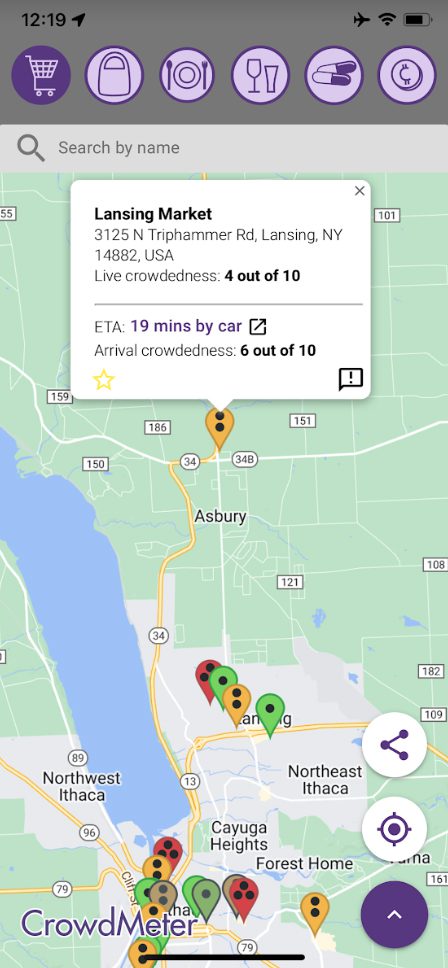 “My wife and I have both been using CrowdMeter when we’re thinking of going to the grocery store at a time it might be crowded,” one user, Ithacan Dennis Frederick, told Michelucci. “We’ve changed our minds about when to go based on the app. We’ve been avoiding crowds, partly because of COVID but also just to avoid the gong show that happens when too many Ithacans go to the same place at the same time.”