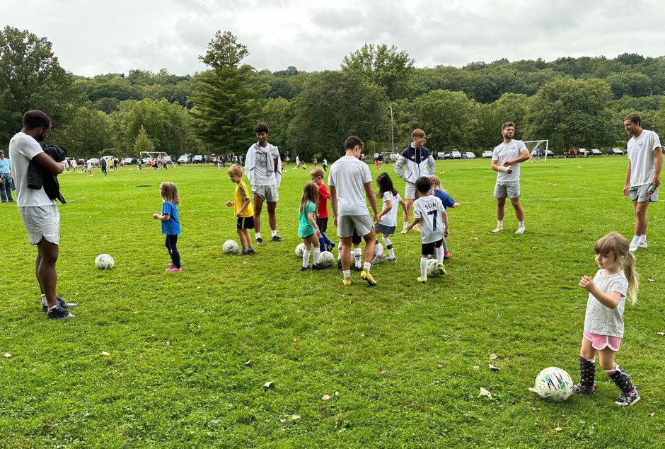 While the Bombers’ roster spans the entire country, two of the players are from Tompkins County: Trumansburg’s Conor Baird and Ithaca’s Ikey Borden. Eldridge knows how much being involved with the local community has meant to them in particular, knowing that not too long ago, they were once in the cleats of the kids who attended their clinic.