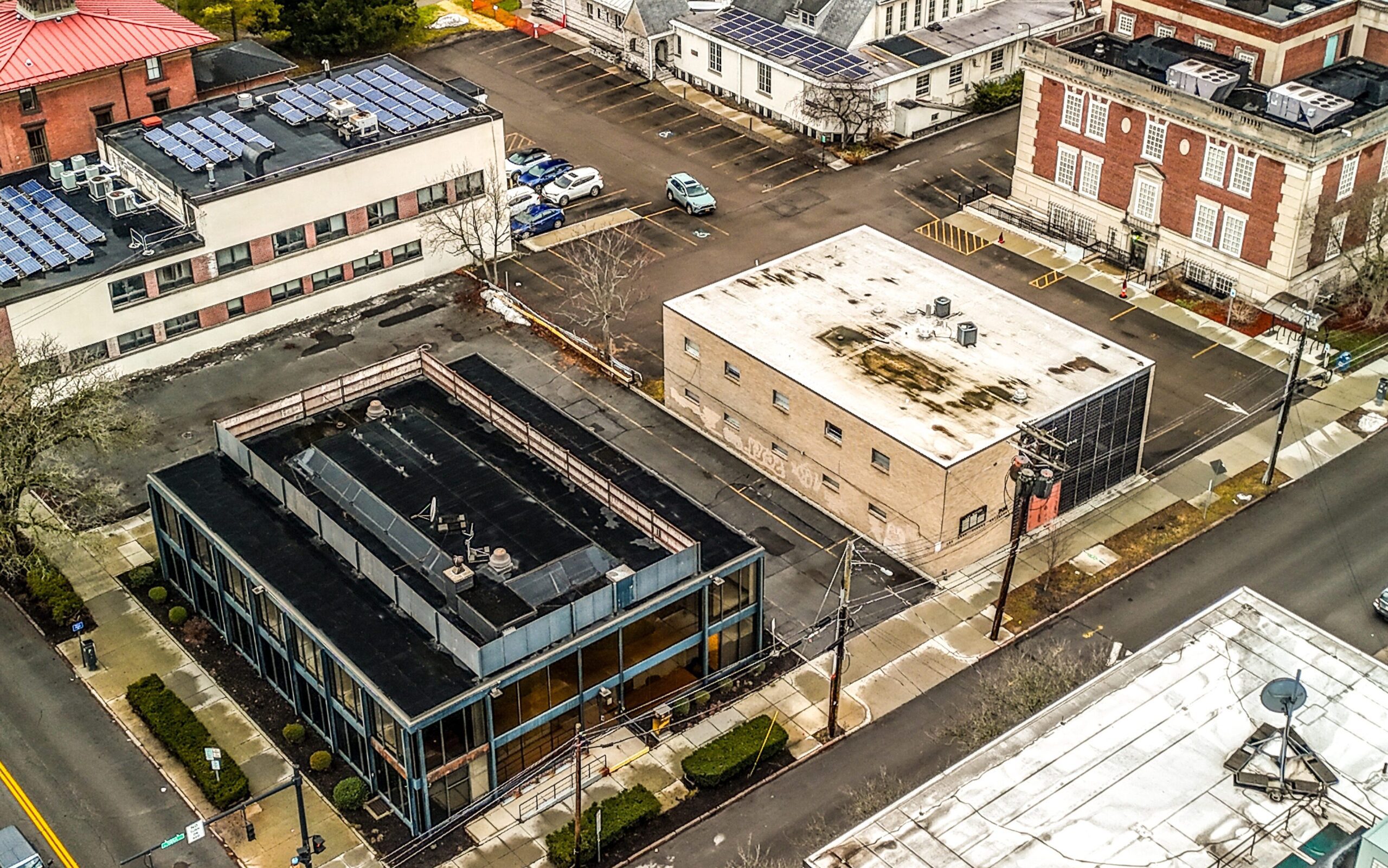 In 2021, Tompkins County purchased 300 and 308 N. Tioga Street and investigated the possibility of reusing the buildings, ultimately determining that a new municipal building should be constructed in their place. The old Key Bank and professional law offices would have to come down.