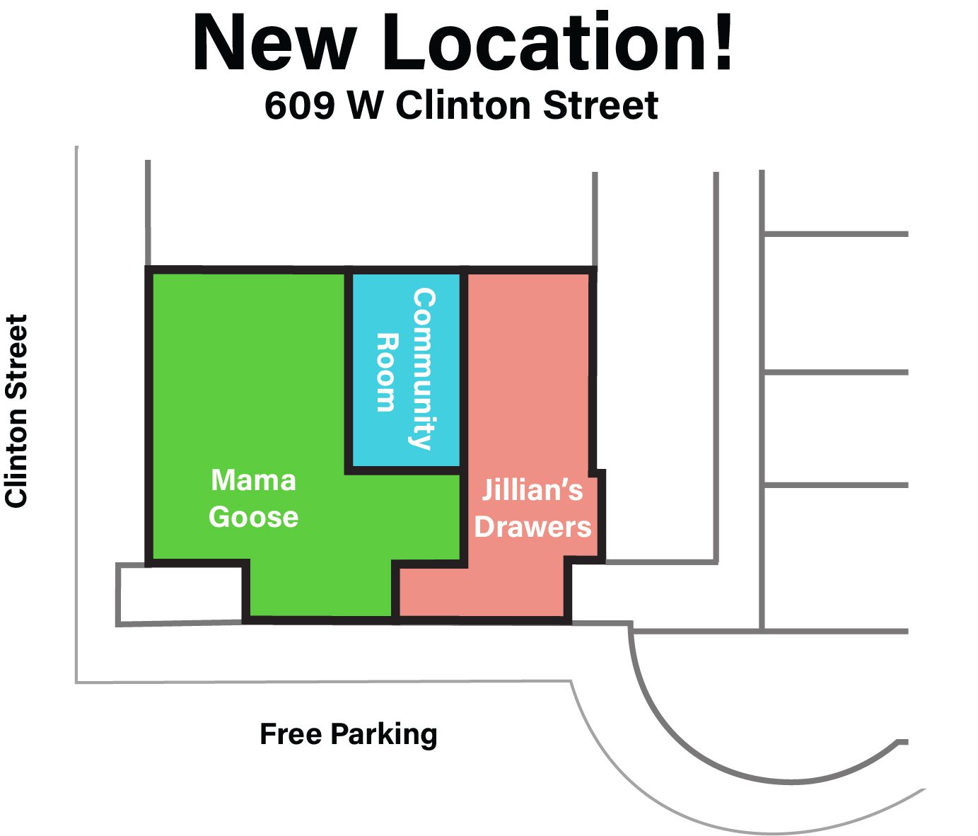 The shared space also has a large room that will be converted into the aforementioned community room, with the projected opening in 2021. Both Mama Goose and Jillian’s Drawers will maintain their full staff at the new location.