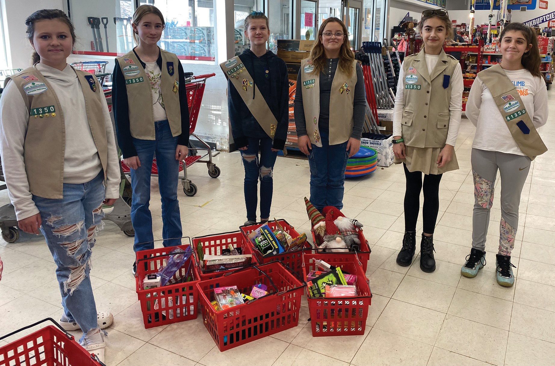 Amelia, Lilie, Brooke, Genevieve, Emma, and Alexa are four Girl Scouts from Troop 41350. The troop is proud to have assisted local families this season. Photo by Courtney Rehfeldt
