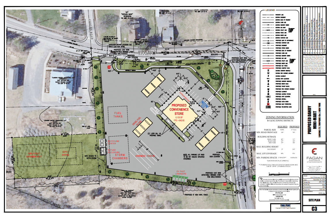 The location for Dandy’s projected store and gas station is a 4.7-acre plot of land at the corner of East Shore Drive and Ridge Road (Route 34 and Route 34B) in the town.
