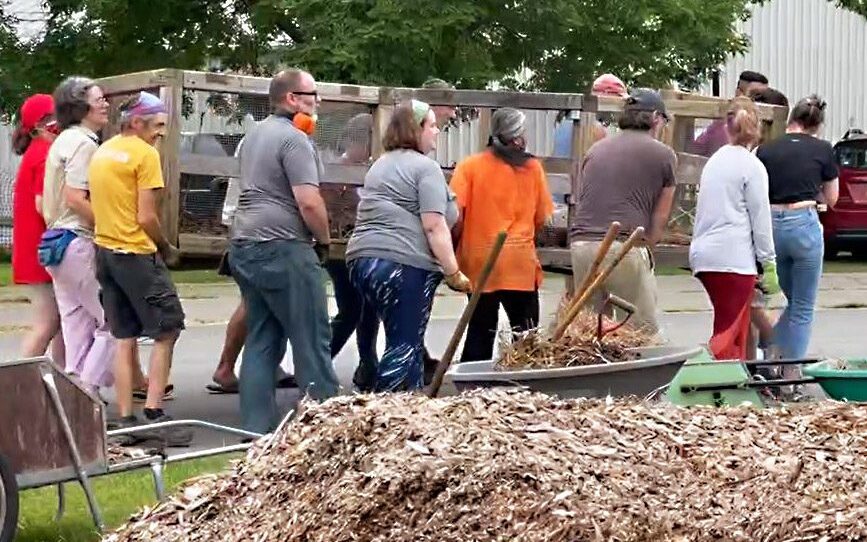 Composting is also practiced at area community gardens. Gardeners grow food in plots and generate a lot of discards throughout the season. These weeds, cuttings, leaves, and dead plants can all be composted within the garden. Whatever compost is produced is worked right back into the garden the following season.