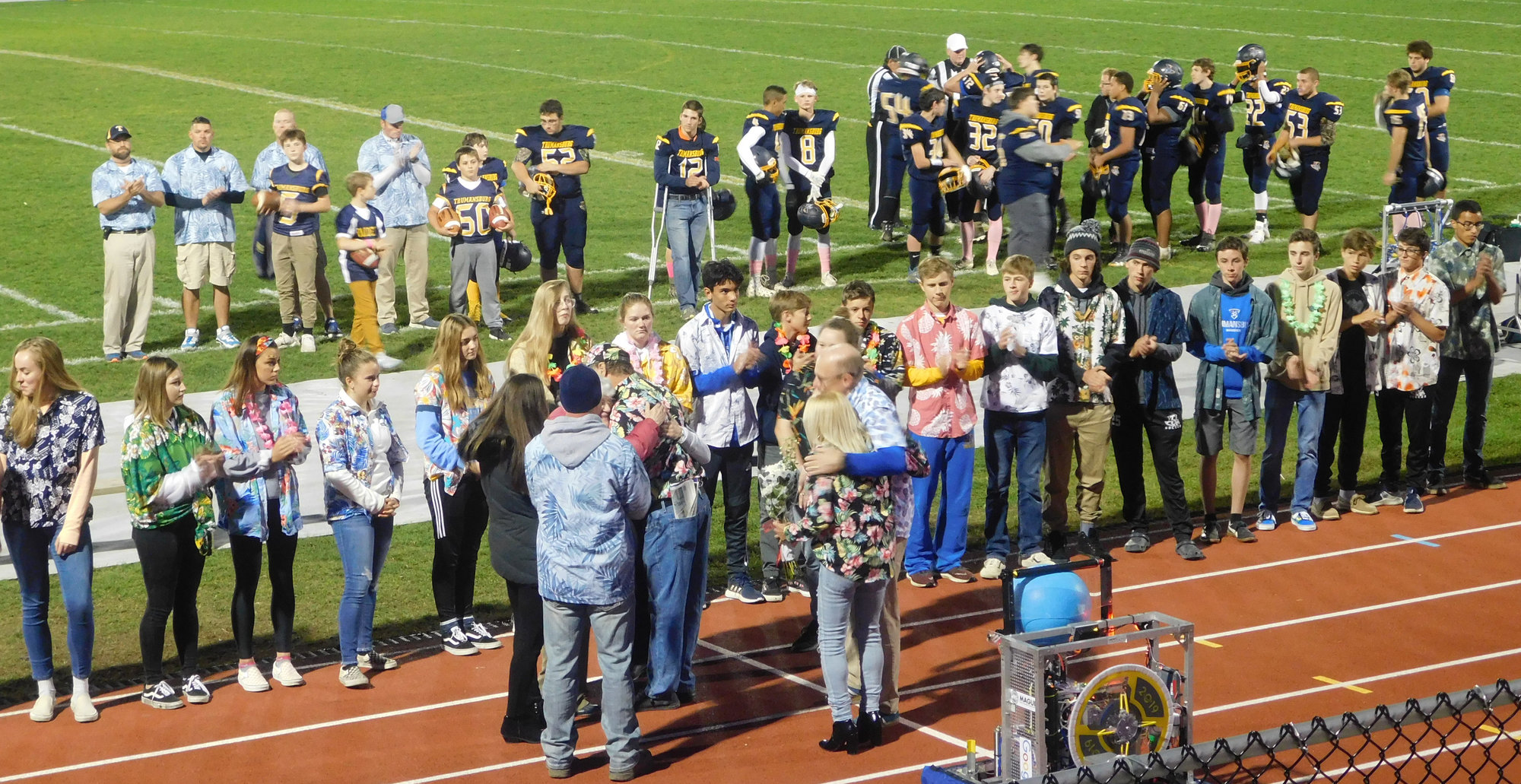 The families of the soldiers were present to receive flowers, and seniors athletes across teams were present in Hawaiian shirts to stand alongside the families during the National Anthem. The Trumansburg community continues to stand in support of the families of the fallen soldiers.
