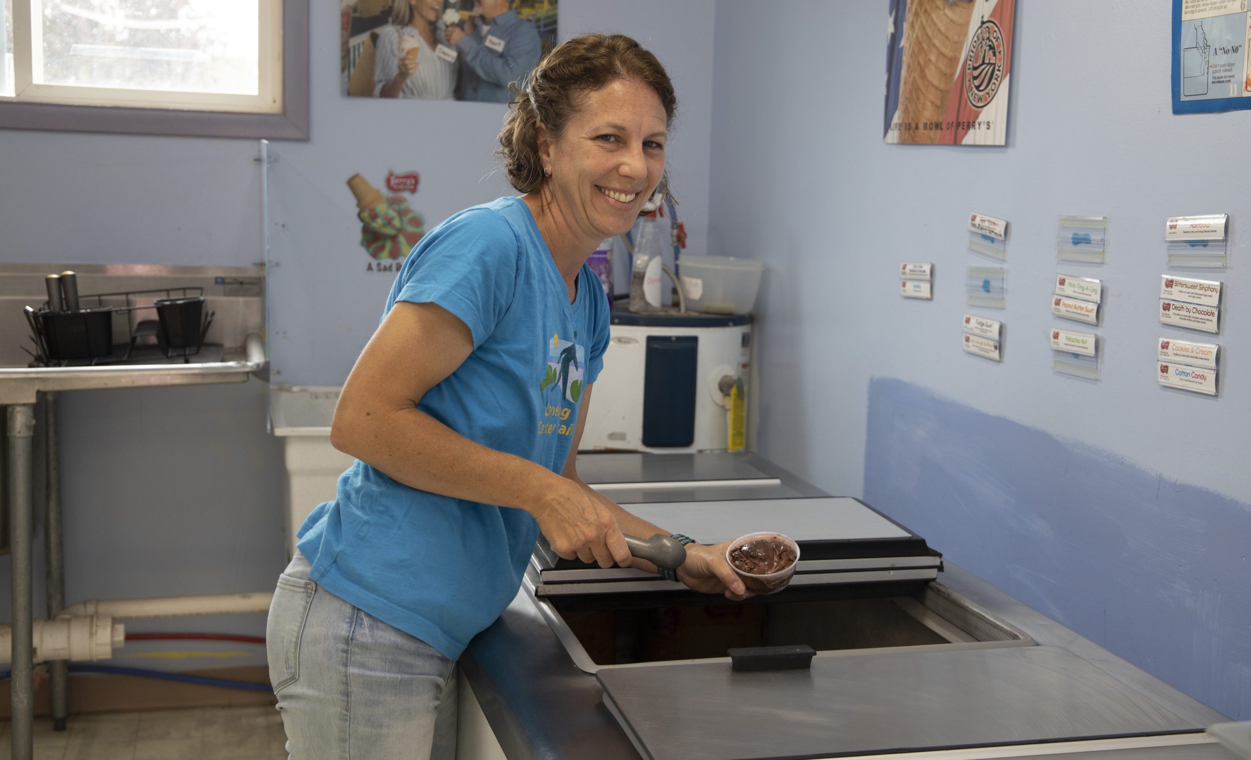 “We wanted the little kids to come get ice cream and walk on the trail,” she said. “I found out [the previous owner] was looking to sell the ice cream shop, and I thought, ‘Oh, that sounds like a cool business to own.’ I love ice cream, and it worked out.”