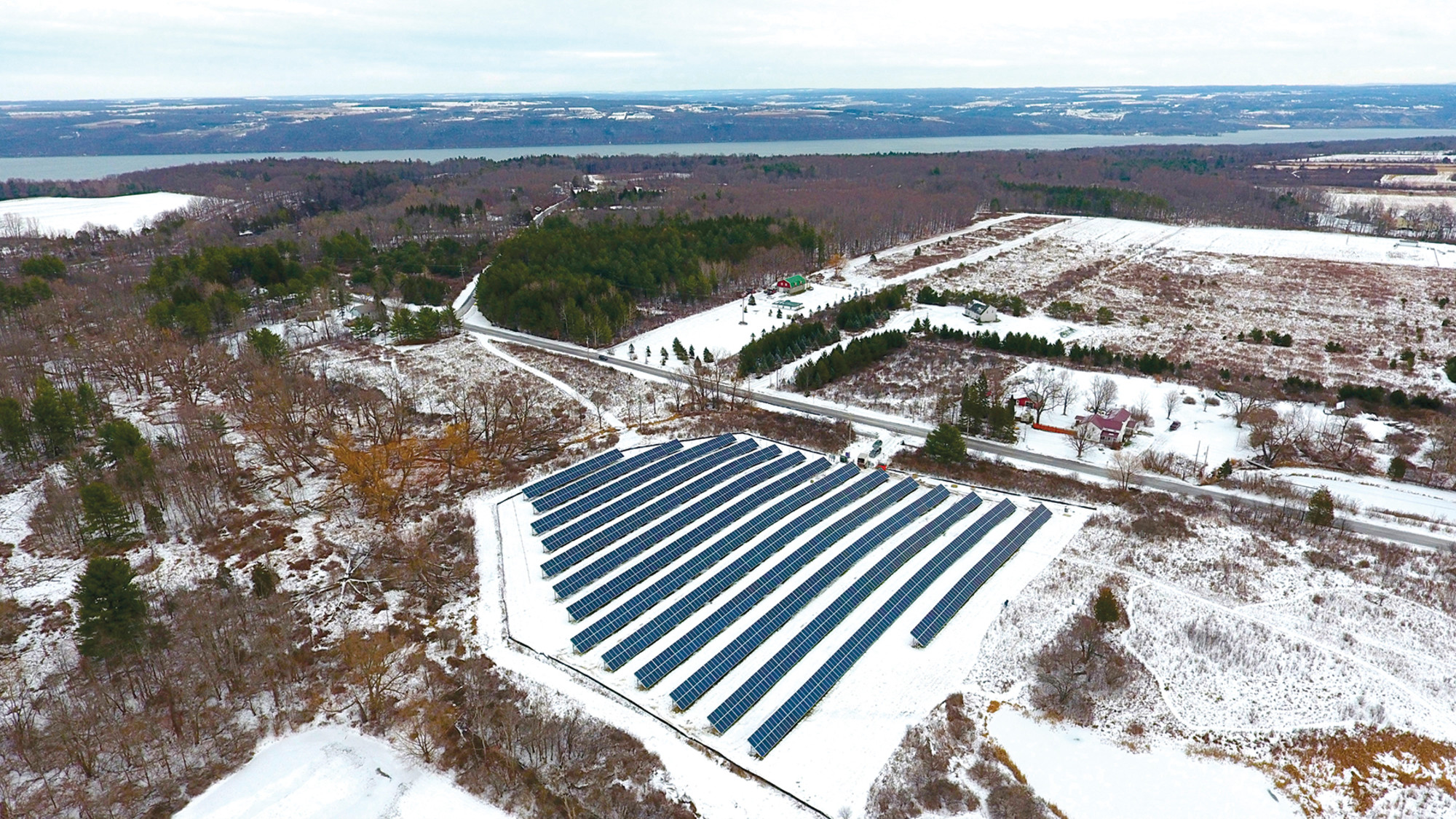 New York state’s first community solar project was developed by locally owned and operated installer, Renovus Solar. The first of its kind, the Renovus Community Solar farm is located in the Town of Ulysses. Owned by a collective of 47 area households, it is comprised of 1,140 solar panels. Together, these panels are capable of generating 359.1 kilowatts of electricity, which is sufficient to power more than 60 homes and local businesses.