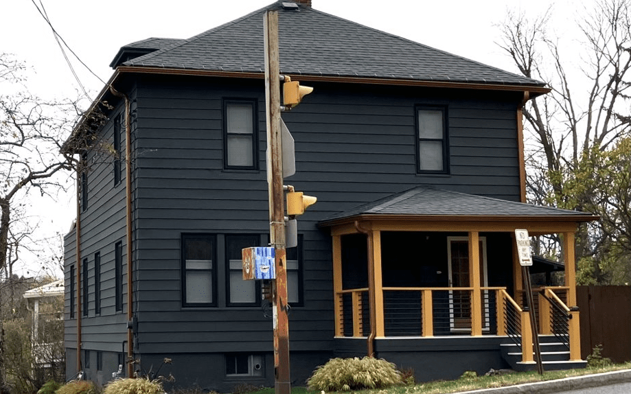 Once characterized by mismatched additions, peeling paint and what the Blumenthal organization described as an “uninviting” porch, the building is now a modern home that stands out on its quiet street.
