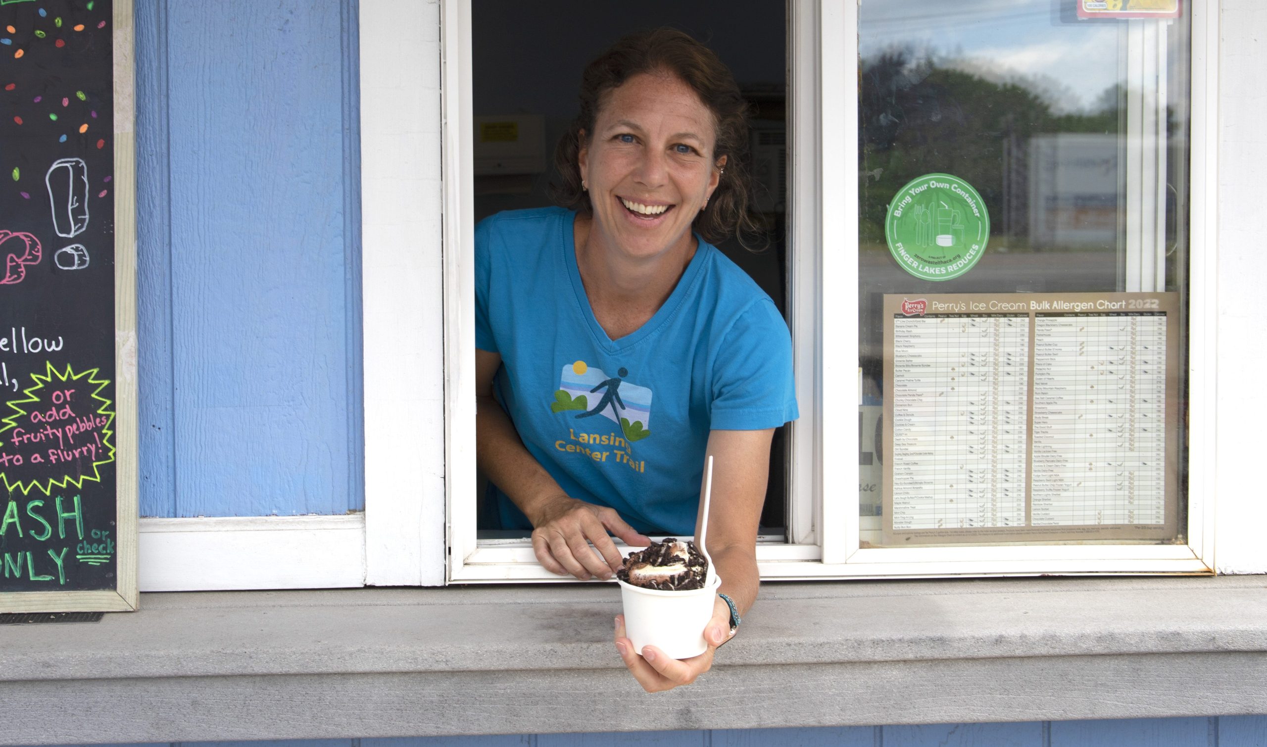 “We like working with the Lansing Center Trail,” she said. “I have a trail sundae that we do, and we donate 50 cents from every sundae. … We love having the trail here, though, because it’s right there. People can get their ice cream and go for a walk on the trail.”