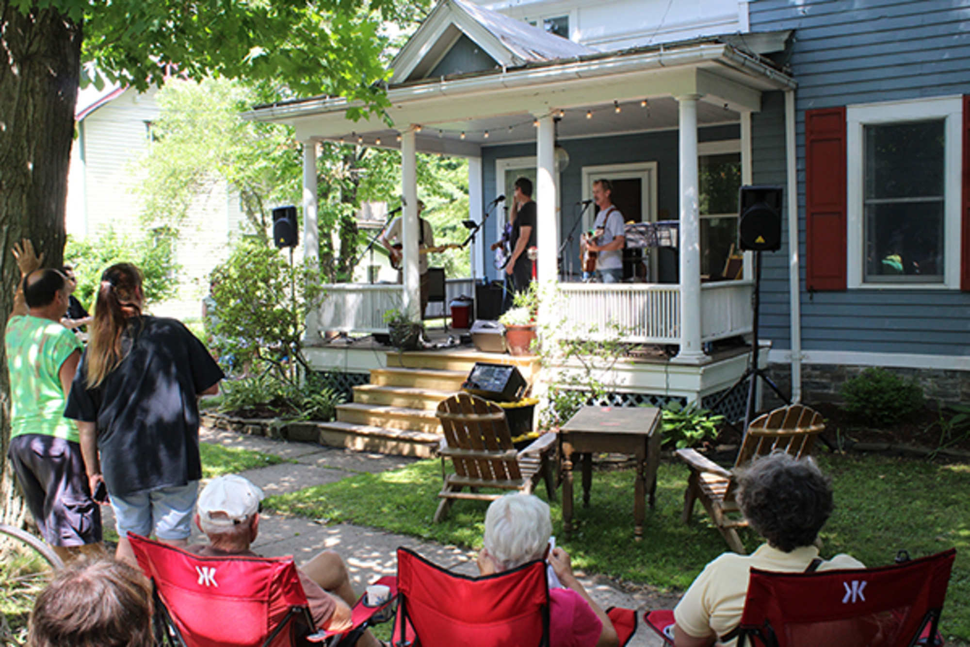 Porchfest organizer Amelia Sauter remarks, “Trumansburg Porchfest brings the community together through music!” Indeed the community spirit of Trumansburg is felt all around Trumansburg, and especially in the homes and on the porches of band hosts. Band host Kate Frazer Devokaitis notes, “Music, tradition, and community are some of our family’s core values, and Porchfest embodies all three. We host bands because it gives us a chance to see friends, discover new music and celebrate the neighborhood we love.”
