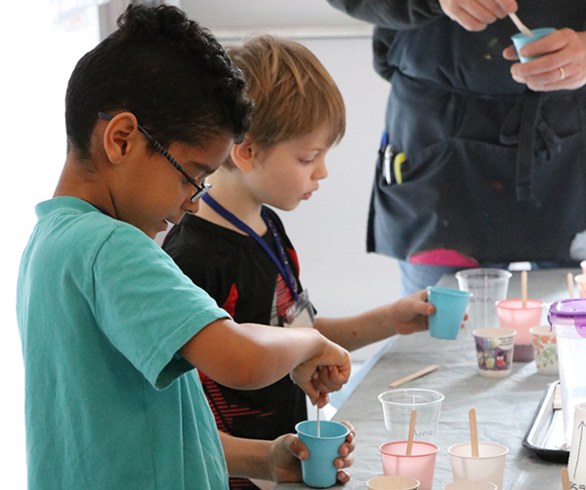 Class visits are set up using a buddy system, where two classes from different schools visit at the same time. They split up into smaller groups to facilitate more hands-on programming, said Bickley. “Part of the program involves the classroom where we learn a little bit more about how rocks are made and how fossils are involved with rocks. And then the classes create different kinds of sedimentary rocks in a cup that the students get to take home with them. They have layers of rocks that they’ve seen in the gorges, and it includes a shell that they can excavate or leave in the layers,” she added.