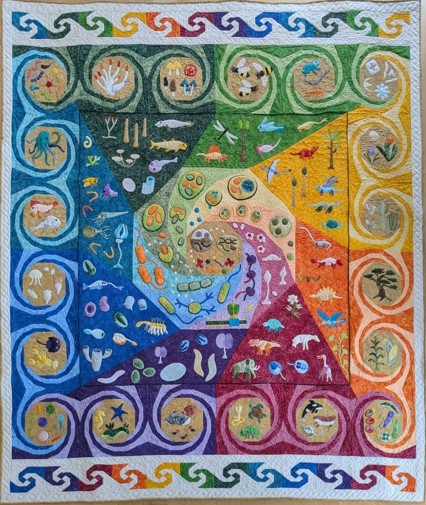 Case in point: Kindle was inspired by her love of biology to make a quilt that displays the beauty of evolution and biodiversity.