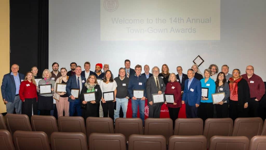 Partnerships aiming to minimize construction waste in Central New York, address isolation and cognitive loss through performance, and promote and nurture local startups received the annual Cornell Town-Gown Awards, announced Nov. 16 at Cinemapolis.