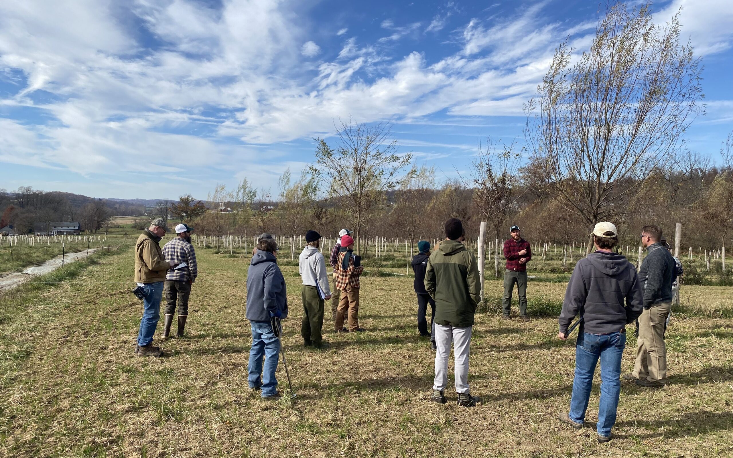 At my farm in Brooktondale, we raise 100% grass-fed sheep. We’ve been experimenting with different types of silvopasture since 2015. We’ve planted an orchard where the animals graze between the rows of trees, a “fodder block” of willows and poplars that we’ll chop down each year so that it continually produces leaves at sheep height for grazing once or twice a year, and a row of elderberry and hazelnuts for sheep shade and additional products for the farm. After attending a 3-day training with Austin and Trees for Graziers this past Fall, we’re now also planning a 1-acre demonstration planting of honey locust, willow, poplar, persimmon, and mulberry in 2024, using a simple system of electrified tree guards so that the new planting won’t require extra labor or fencing when grazing our flock through there several times a year.