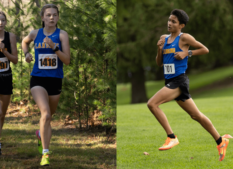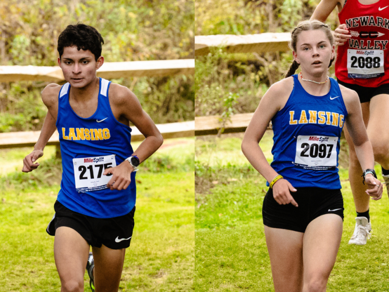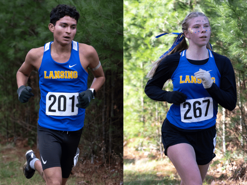 Lansing cross country excels with top finishes in IAC and Section IV, highlighted by leaders Trent Thibault and Evelyn Jackson.