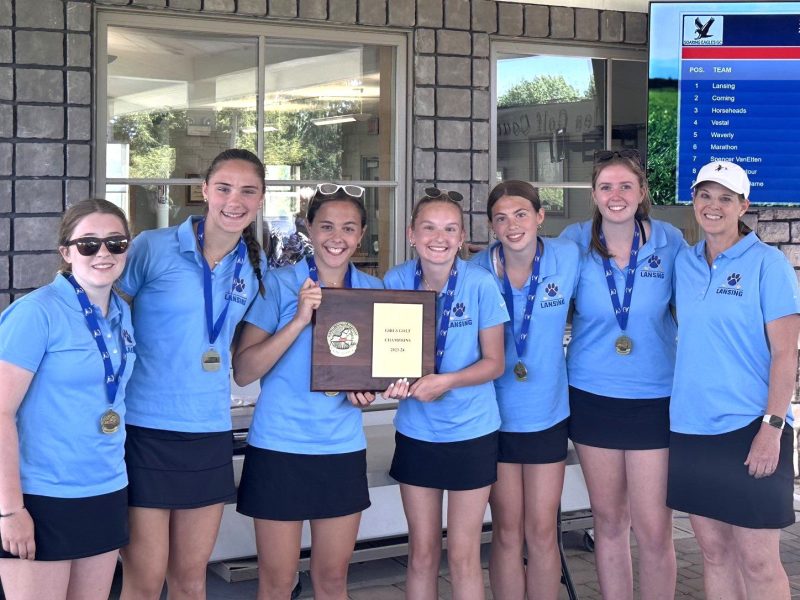 Lansing girls golf team secures 5th straight IAC & 2nd consecutive Section IV titles, led by Hailey Baughan, heading to states.