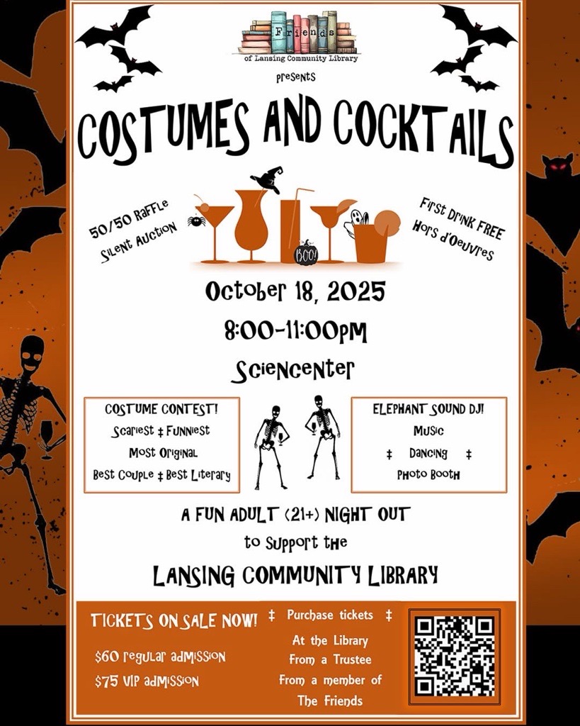 Sciencenter 601 1st Street, Ithaca🎭🍸 Costumes & Cocktails — Friends of Lansing Community Library Host: Friends of Lansing Community Library Date & Time: 📅 Saturday, October 18, 2025 🕗 8:00–11:00 PM Location: 📍 Sciencenter Description: Join us for a fun adult (21+) night out to support of the Lansing Community Library! What to Expect: 🎶 Music & Dancing with […]