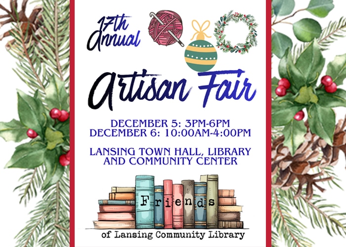 Join us for this annual favorite community event celebrating local creativity and craftsmanship — and supporting the Friends of the Library at the same time! Discover one-of-a-kind, locally made treasures perfect for the holiday season. 🎨🛍️ 📍 Location: Lansing Town Hall, Community Center & Library (ground floor) 🗓 Dates:• Friday, December 5 | 3–6 PM […]