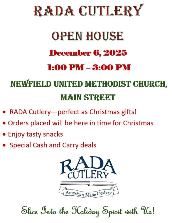 RADA Cutlery—perfect as Christmas gifts! Orders placed will be here in time for Christmas. Special Cash and Carry deals. Enjoy tasty snacks. |