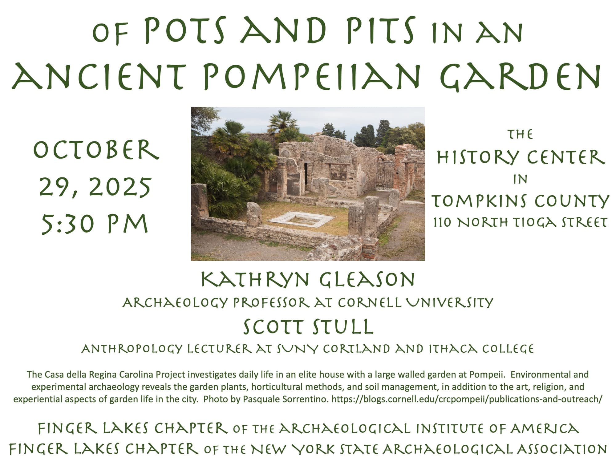 The Casa della Regina Carolina Project investigates daily life in an elite house with a large walled garden at Pompeii. Environmental and experimental archaeology reveals the garden plants, horticultural methods, and soil management, in addition to the art, religion, and experiential aspects of garden life in the city. Kathryn Gleason is an Archaeology Professor at […]