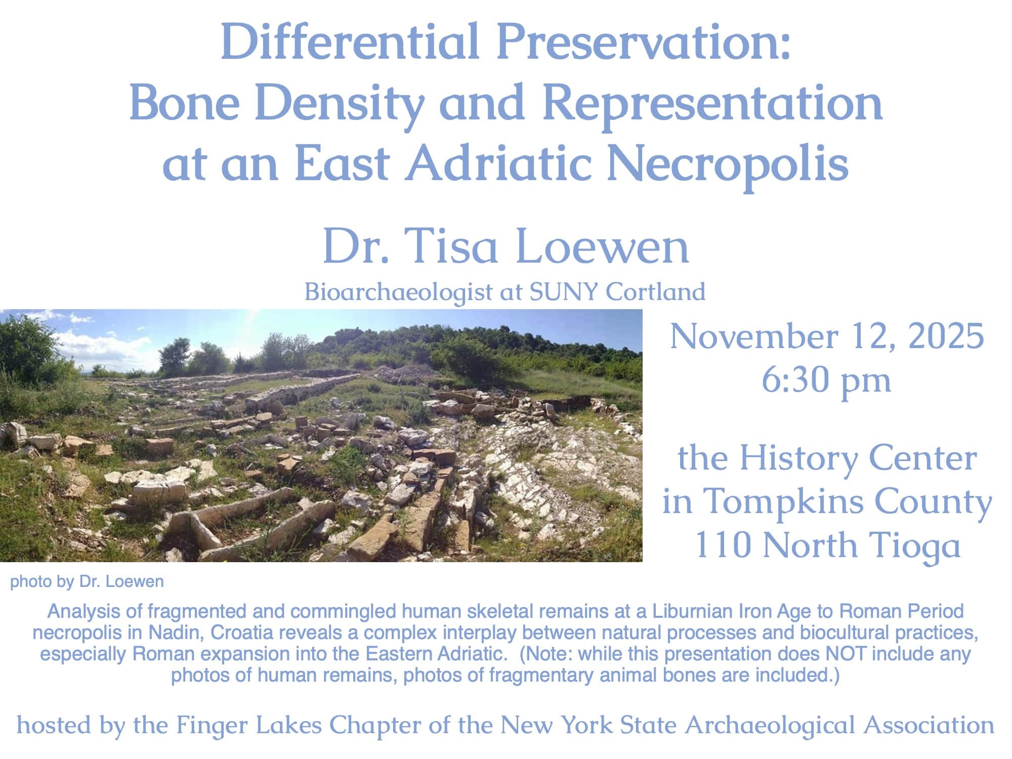 Analysis of fragmented and commingled human skeletal remains at a Liburnian Iron Age to Roman Period necropolis in Nadin, Croatia reveals a complex interplay between natural processes and bicultural practices, especially Roman expansion into the Eastern Adriatic. (Note: while this presentation does NOT include any photos of human remains, photos of fragmentary animal bones are […]
