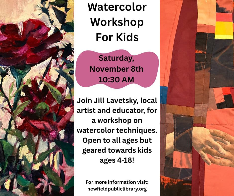 Artworks by Jill Lavetsky will be on display at the Newfield Public Library the whole month of November. Stop in and view the beautiful work by this local artist and educator. Originally from South Florida, she received a Master's degree in painting from Florida Atlantic University in 2013, and has taught college, K-12 through community […]