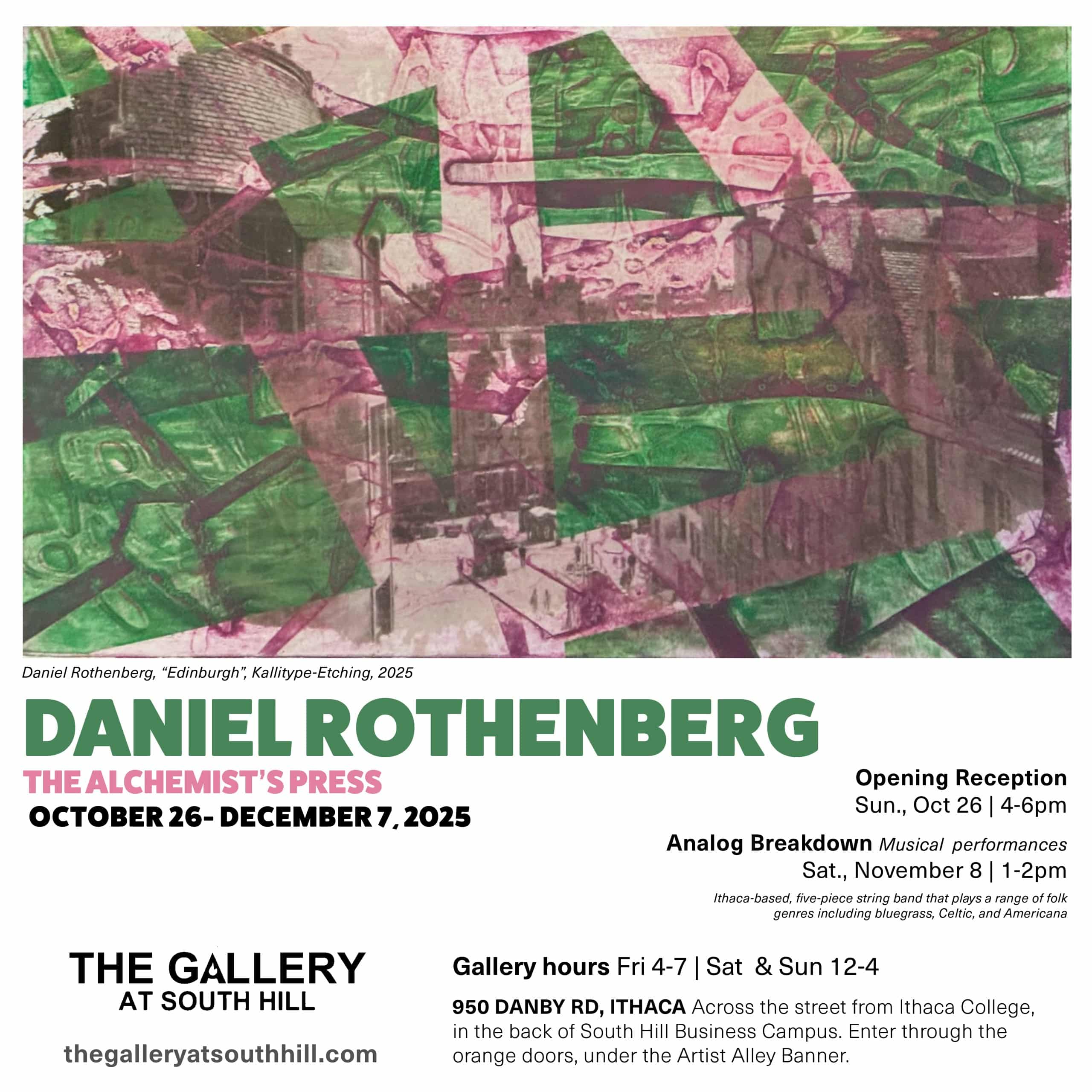 The Gallery at South Hill, Daniel Rothenberg "The Alchemist's Press" exhibit. This one person exhibit features the work of Rochester, NY based artist Daniel Rothenberg who works with photography and […]