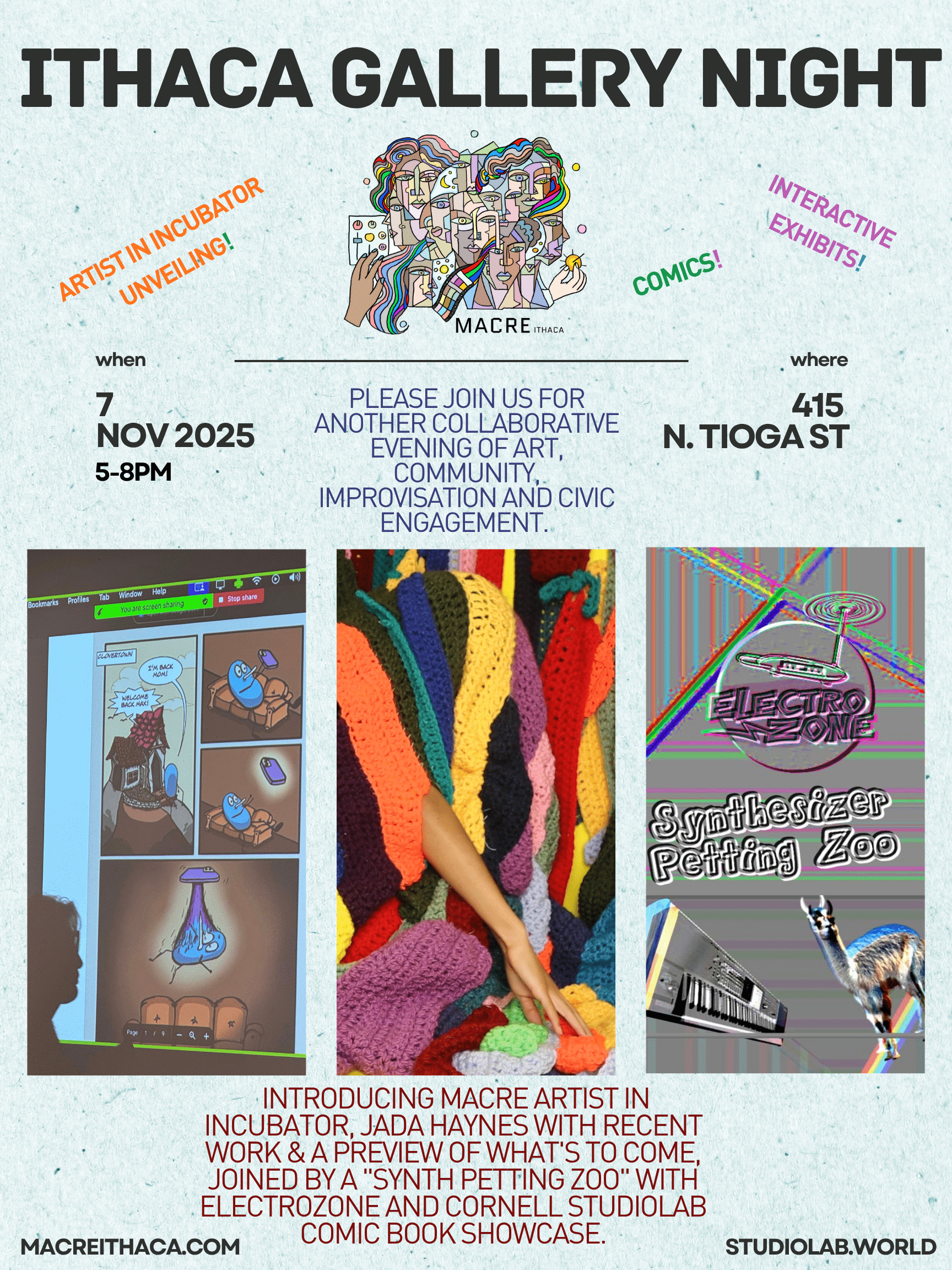 Join us for a vibrant group exhibition showcasing talented Latine artists from within 100 miles of Ithaca. Come meet the artists, buy unique works of art, enjoy appetizers, and learn more about the Latino Civic Association and curators Loreto Molina & Yen Ospina. 📅 Friday, November 7th 🕔 5–8 PM 📍 Downtown Ithaca This is […]