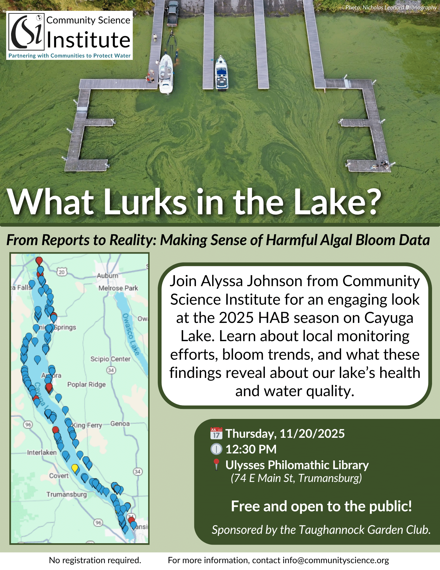 Join Alyssa Johnson from Community Science Institute for an engaging look at the 2025 HAB season on Cayuga Lake. Learn about local monitoring efforts, bloom trends, and what these findings […]
