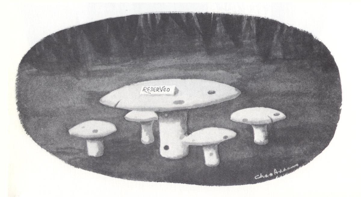 Morticia and Gomez, their eccentric family and household, all were inspired by the wonderfully strange work of artist Charles Addams, who drew hundreds of cartoons, mainly for New Yorker magazine, during his long career. Many of us can still sing, from memory, the words to the theme song from the very first Addams Family TV show! Less widely known is that for every cartoon that featured his now-iconic Family, Addams drew many, many cartoons that featured other oddball individuals, lots of eccentric monsters, and, very often, ordinary people caught up in extraordinary situations. At the meeting on 12/2/2025 of the Comic Book Club of Ithaca, we will take a look at some of these other, but equally wonderfully strange, works by Charles Addams.