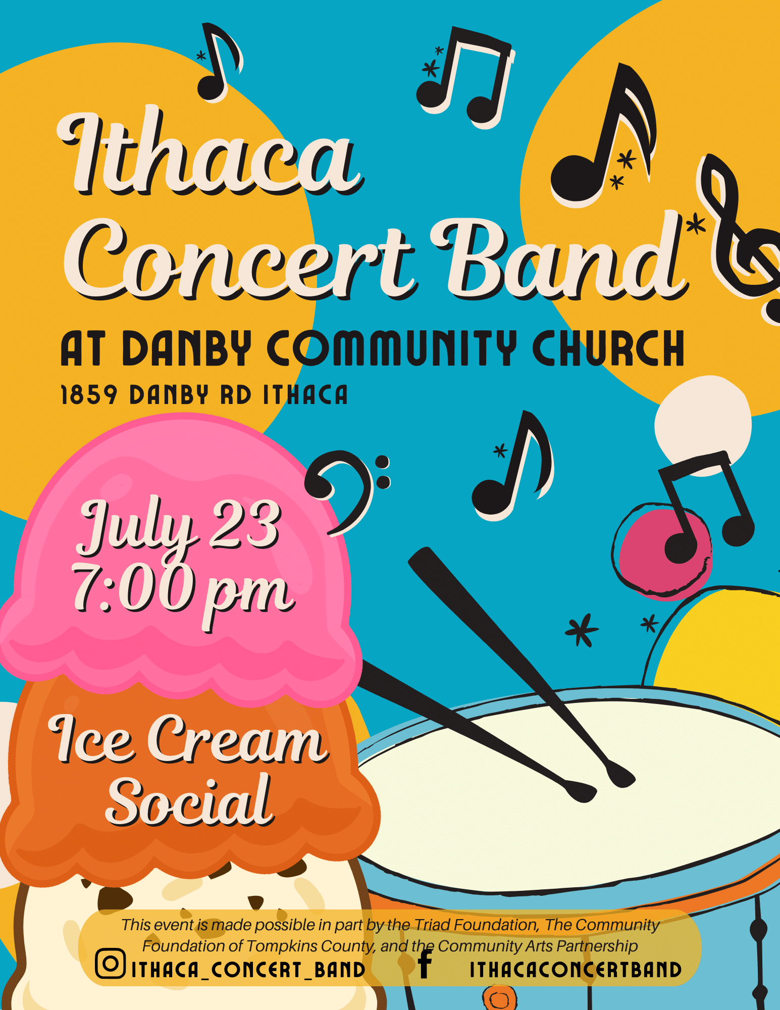 Bring a lawn chair or blanket and enjoy the sounds of summer with the Ithaca Concert Band. There will be a free ice cream social following the concert. Follow us for more information about this and all other concerts!
